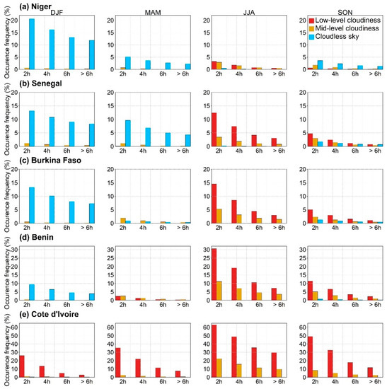 - Danso, D.K.; Anquetin, S.; Diedhiou, A.; Lavaysse, C.; Kobea, A.; Touré, N.E. Spatio-Temporal Variability of Cloud Cover Types in West Africa with Satellite-Based and Reanalysis Data. Q. J. R. Meteorol. Soc. 2019, 145, 3715–3731. [Google Scholar] [CrossRef]