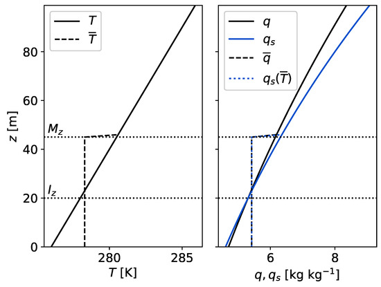 In the following we present idealized examples of Equation (7). Section 2.1.1 illustrates the case of constant moisture, and Section 2.1.2 illustrates a stably stratified log-linear temperature profile.