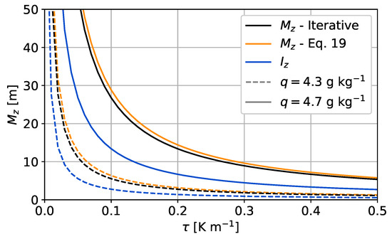 An explicit a priori expression for Mz cannot be given for general T and q profiles, where must instead be found iteratively. However, below we present a canonical example, that of a linearly stratified profile, that does allow such explicit expression (at least approximately). This case shows that, as a rule-of-thumb, for a stable temperature profile.