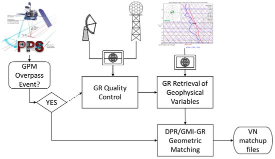 Workflow of the GPM VN process to produce Dual-frequency Precipitation Radar (DPR)/GPM Microwave Imager (GMI)-GR matchup files.