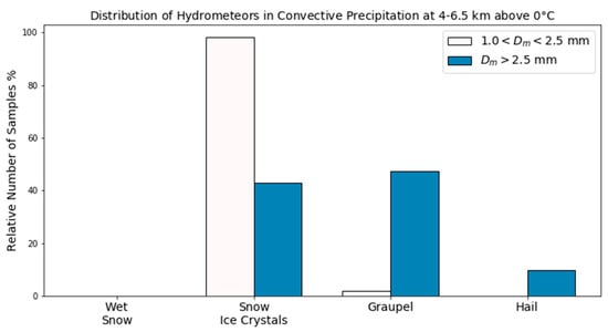 VN matchups of GR hydrometeor identifications at 4–6.5 km above 0 °C within DPR inner swath rays through convective precipitation in which 2ADPR retrievals are (white) 1.0 < Dm < 2.5 mm and (filled) Dm > 2.5 mm.