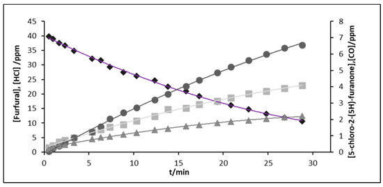 3 and 2-nitrofuran were obtained. An example of the concentration–time profiles for the reaction of Cl atoms and furfural is shown in