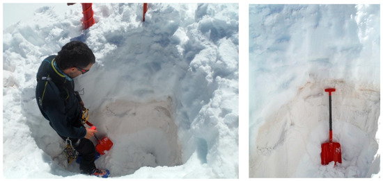 Illustration of the snowpack section after the February 2017 dust event. Sampling site near the Marboré Lake. Photo by M. Bartolomé.