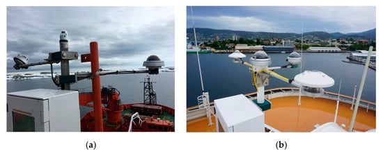 An all-sky camera on RSV Aurora Australis was used to obtain colour images at 1-min intervals for analysis of cloud properties during the 2015 to 2016 and 2018 to 2019 seasons. The camera is based on a colour charge-coupled device (CCD) sensor with a three-element 1.24 mm F2.8 lens which can provide a 190° hemispherical “fisheye” field of view to identify cloud distribution and is weather-protected by a heated glass dome. Figure 2a shows the camera arrangement for the 2018 to 2019 season; the arrangement for the 2015 to 2016 season is shown in Figure 2 of Klekociuk et al. [31].