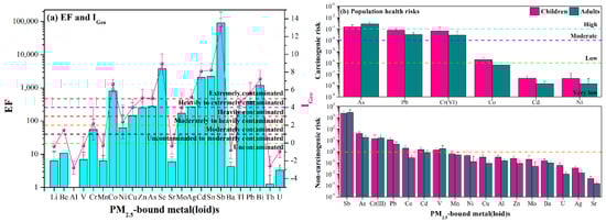 The (a) EF and IGeo, and (b) population health risks for PM2.5-bound metal(loid)s during the winter haze episode.