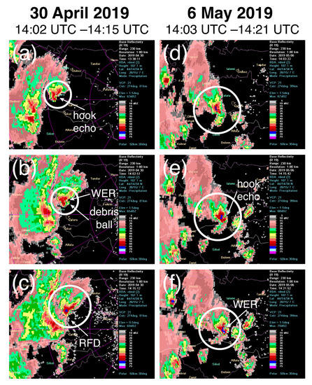 - Understanding Basic Tornadic Radar Signatures. Available online: https://www.ustornadoes.com/2013/02/14/understanding-basic-tornadic-radar-signatures (accessed on 28 July 2020).