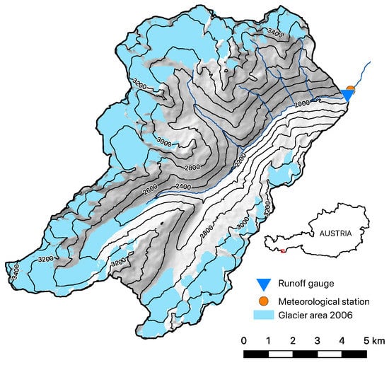 - Strasser, U.; Marke, T.; Braun, L.; Escher-Vetter, H.; Juen, I.; Kuhn, M.; Maussion, F.; Mayer, C.; Nicholson, L.; Niedertscheider, K.; et al. The Rofental: A High Alpine Research Basin (1890–3770 m a.s.l.) in the Ötztal Alps (Austria) with over 150 Years of Hydrometeorological and Glaciological Observations. Earth Syst. Sci. Data 2018, 10, 151–171. [Google Scholar] [CrossRef]