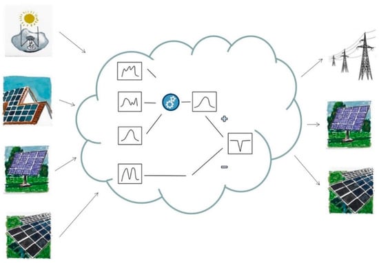 In our work, we aim to establish the optimal management and flexibility of the electricity grid, enabling thus the development of flexible green-powered electricity grids across cities. This can be achieved through the development of a dynamic flow map of the power output of the PVs, not only over the PVs under investigation but over whole regions. More specifically, all PVs will connect on a grid, since a dense network of PVs providing continuous data will enable very high temporal and spatial resolution of forecasts. The database inputs will derive from real-time electricity data of the dense multipoint network of grid-connected PVs. All input data will be stored in the database for current and/or future needs. Moreover, the input data will be processed to extract the normalized power output of each PV, without the need for other equipment, the technical characteristics of the PV or other energy or meteorological related equipment/models for a given area. Additionally, the future PV electricity production will be computed using PV power output prediction models. The database will provide information regarding solar electricity generation from the PVs, failures, daily and annual yield, and statistical analysis of the data. Therefore, the database could be utilized as a service to large scale or aggregated PV managers to provide the system operators for capacity management and scheduling. Figure 1 shows the conceptual framework of the idea behind our work.