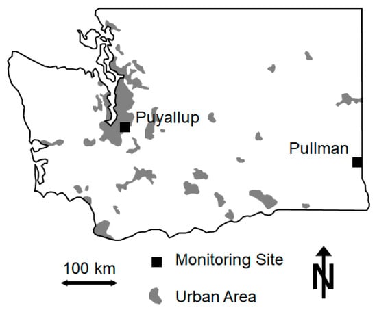 - Western Regional Climate Center. Data reported for Pullman measured in nearby Moscow, Idaho and for Puyallup measured at Puyallup 2 West Experimental Station. Available online: www.wrcc.dri.edu/ (accessed on 1 March 2013).