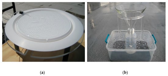 (a): Dry deposition sampler. Plate diameter is 35 cm. (b): Wet deposition sampler. Funnel diameter is 20 cm.