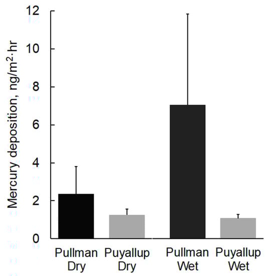 Dry and wet Hg deposition at Pullman and Puyallup, WA. Values are mean plus one standard deviation (n = 3–6).
