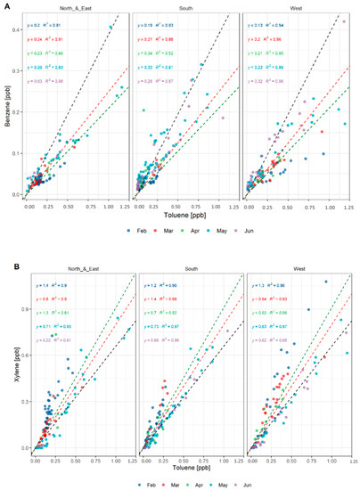 - Zalel, A.; Yuval; Broday, D.M. Revealing source signatures in ambient BTEX concentrations. Environ. Pollut. 2008, 156, 553–562. [Google Scholar] [CrossRef] [PubMed]