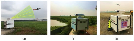 Wake vortex observation experiments (a) for the take-off phase at Mianyang Nanjiao Airport (MNA), (b) for the landing phase at Chengdu Shuangliu International Airport (CSIA), and (c) for the take-off phase at CSIA.