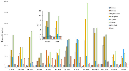 - Edwards, R.D.; Jurvelin, J.; Saarela, K.; Jantunen, M.J. VOC concentrations measured in personal samples and residential indoor, outdoor and workplace microenvironments in EXPOLIS-Helsinki, Finland. Atmos. Environ. 2001, 35, 4531–4543. [Google Scholar] [CrossRef]
