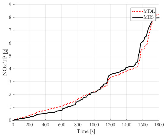 This validation showed a good behavior of the models, even if the strong assumptions inherent to a virtual sensor approach cause non-negligible errors. The estimations of fuel consumption and CO2. Emissions are the most precise with a typical modeling error from 5% to 10% depending on the vehicle and the trip (an example is given in Figure 9). In this case, the main source of error is the estimation of the gearbox ratio in the case of a manual transmission. Among pollutant emissions, the estimation of NOx emissions is the most effective with typical errors ranging from 5% to 20%. For NOx emissions, the most critical situations are short trips with a modern Diesel engine fitted with an after-treatment system highly sensitive to the warm-up duration. CO emissions for gasoline engine and PM for Diesel are the most critical emissions to a model with a typical error of 10% to 25%. Nevertheless, this accuracy is consistent with the level of complexity of the pollutant models.