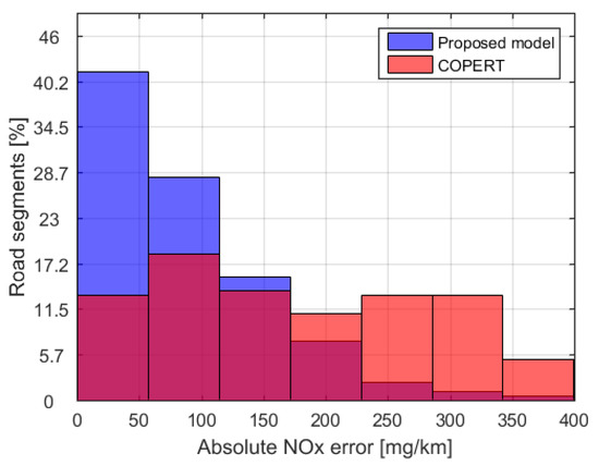 Comparison of errors between the proposed model and the COPERT approach.