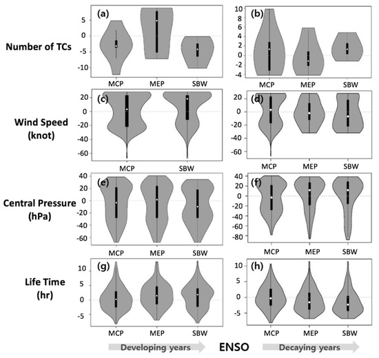 - Kim, J.-S.; Kim, S.T.; Wang, L.; Wang, X.; Moon, Y.-I. Tropical cyclone activity in the northwestern Pacific associated with decaying Central Pacific El Ninos. Stoch. Environ. Res. Risk Assess. 2016, 30, 1335–1345. [Google Scholar] [CrossRef]