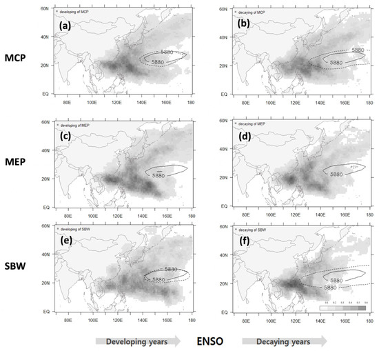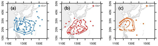 - Hirata, H.; Kawamura, R. Scale interaction between typhoons and the North Pacific subtropical high and associated remote effects during the Baiu/Meiyu season. J. Geophys. Res. Atmos. 2014, 119, 5157–5170. [Google Scholar] [CrossRef]
