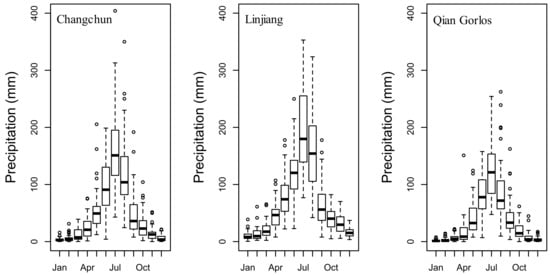 In this study, the study area includes three stations, namely Changchun, Linjiang and Qian Gorlos in Jilin province, Northeast China between 41° N to 46° N and 122° E to 131° N and experience a temperate continental monsoon climate. The climate of Jilin province is classified into different categories of humid climatic conditions. Qian Gorlos is located in northwestern Jilin province, which is arid and semi-arid, while Linjiang is located in southeastern Jilin province, which is humid and semi-humid. The climate of Changchun represents a transitional zone between the semi-humid mountains to the east and semi-arid plains to the west. The locations of the stations used in Jilin province, Northeast China, shown in Figure 1. Table 1 presents the geographical coordinates and climatic conditions of the three selected stations.