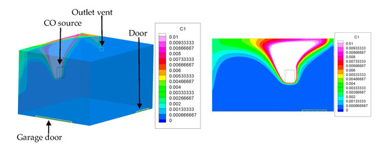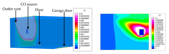 CO distribution in the garage—case 2 (concentration of CO in kg/kg).