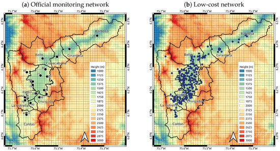 In Medellín and its greater metropolitan area inside the Aburrá Valley, the Sistema de Alerta Temprana del Valle de Aburrá (SIATA) project operates the official high-end air quality monitoring network (henceforth official network), and a hyper-dense, low-cost air quality network developed within the Citizen Scientist program (henceforth low-cost network).