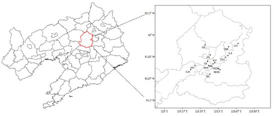 Map of Liaoning Province and locations of the ambient air quality monitoring sites in Shenyang.