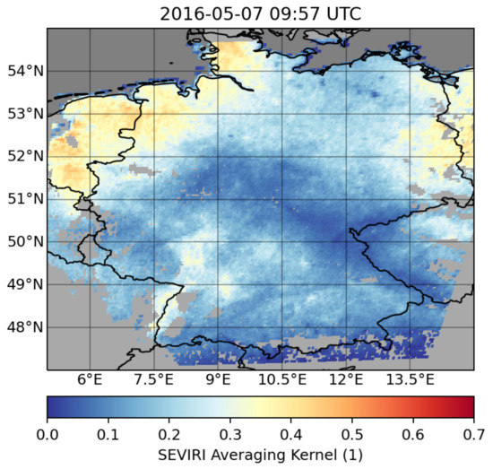 In other scenes (not shown) with higher TCWV values (e.g., in summer), AVKs were higher, at approx. 0.6–0.7. The median average for the 3000 scenes is 0.3.