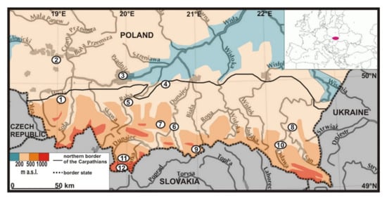 - Izmaiłow, B.; Kaszowski, L.; Krzemień, K.; Święchowicz, J. Rzeźba [Relief]. In Karpaty Polskie [The Polish Carpathians]; Warszyńska, J., Ed.; Institute of Geography, Jagiellonian University: Krakow, Poland, 1995; pp. 23–30. [Google Scholar]
