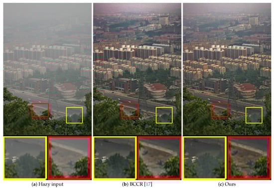 Visual comparisons on a real-world hazy image of “ny17”.