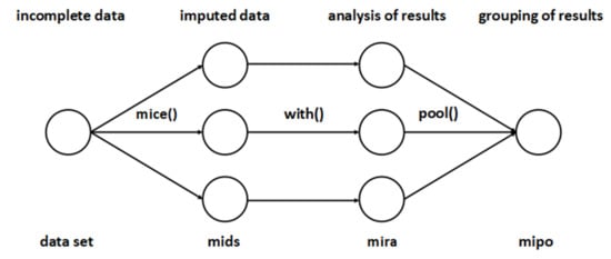 - Van Buuren, S.; Groothuis-Oudshoorn, K. MICE: Multivariate Imputation by Chained Equations in R. J. Stat. Softw. 2011, 45, 1–67. [Google Scholar] [CrossRef]