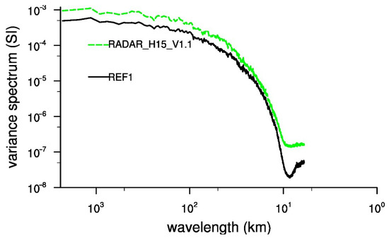 Spectrum of temperature increments at 850 hPa computed at 3:00 a.m. UTC 10 July 2016 for REF1 (black) and RADAR_H15_V1.1 (green).