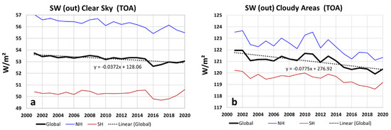 | SW Flux out-Clear Sky-TOA NH | 56.83 | 0.10 | −0.0616 | 0.0086 | −0.62 | 14 |