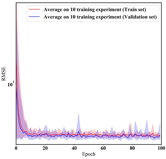 Figure 6 shows the learning process of the HybridLSTM model with the optimized hyper-parameters during 10 training experiments. The validation set determines whether the model have an overfitting problem for new PM2.5 data. The training/validation loss was sufficiently converged during the 10 repeated experiments of HybridLSTM, as shown Figure 6. In other words, the developed model represents a robust model without overfitting. Therefore, researchers can develop and use a model with consistent calibration performance.