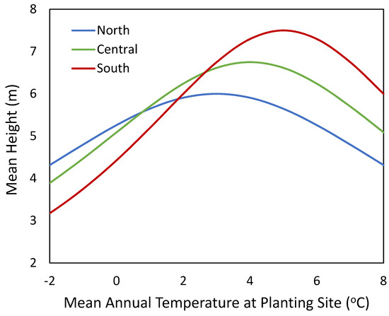 Expected height growth response of northern, central, and southern seed sources along a gradient of mean annual temperature (modified from Pedlar and McKenney [19]).