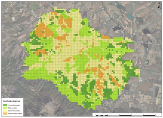 The data for LST were used for the preliminary estimation of the heat load in Sofia. The heat load can be categorized into four stages (most favorable, favorable, less favorable, and most unfavorable) on the basis of the standardized temperature values by the applied z-transformation according to the following formula []: