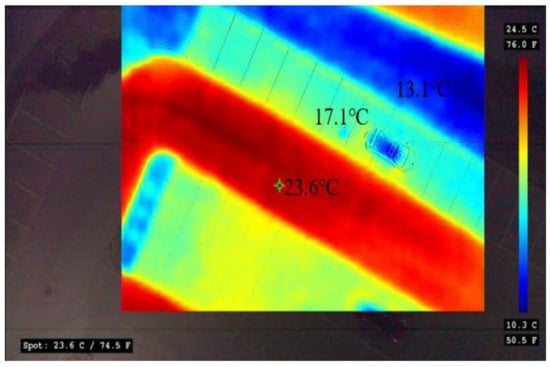 Thermal image example of the differences between land surface temperatures of different land cover types (Hypermarket “HIT” in Lyulin district, Sofia (9:30 p.m., 7 August 2019)).