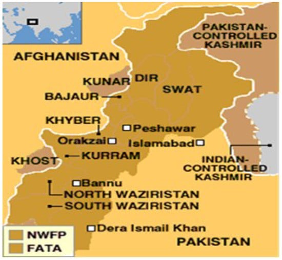 Location of Bajaur area. It is very close to the Afghanistan border near the famous Kunar Valley.