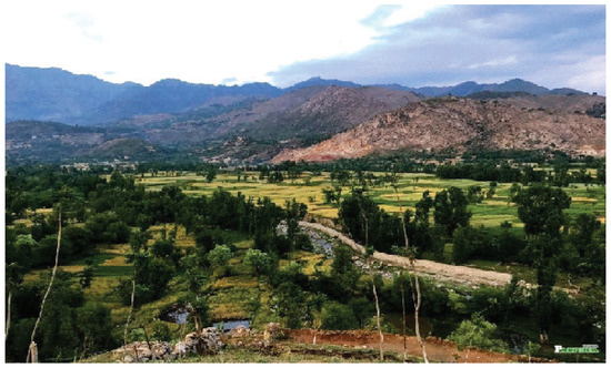 A panoramic view of Bajaur area with lush green fields and water courses [1].