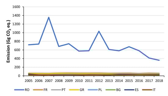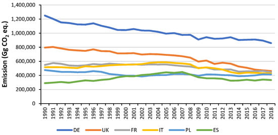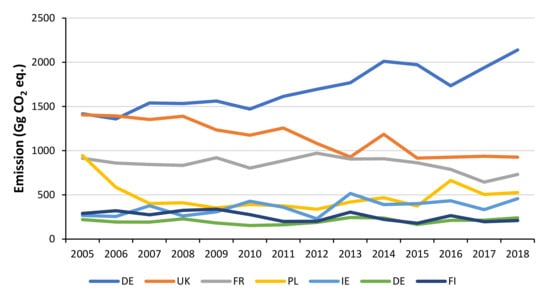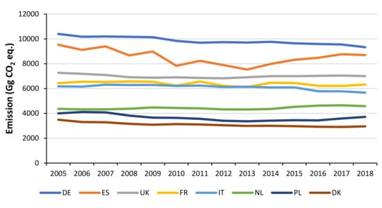 - Eurostat. The Source Data for GHG Emissions. 2020. Available online: http://ec.europa.eu/eurostat/data/database (accessed on 12 December 2020).