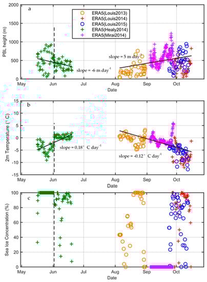 - Sato, K.; Inoue, J.; Kodama, Y.; Overland, J.E. Impact of Arctic sea-ice retreat on the recent change in cloud-base height during autumn. Geophys. Res. Lett. 2012, 39, L10503. [Google Scholar] [CrossRef] [Green Version]