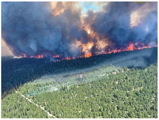 Wildfire in British Columbia, end of June 2021. See Figure 4 for location map of maximum temperatures near Lytton, BC. Source: BC Wildfire Service/AFC via Gett.