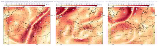 The ERA-Interim Reanalysis and the ASCAT data are openly available via Copernicus (www.copernicus.eu; accessed on 20 October 2021). The EUMETSAT images became available via the Hellenic Meteorological Service.