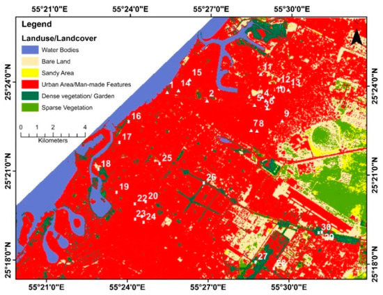 Land use/Land cover (LULC) is the placement of activities and physical structures within a specific geographical area. It is a crucial metric for determining how human activities interact with the natural world [44]. The local, regional, and global environments are under tremendous stress due to changing land-use practices. The degradation of air quality is one of the most important environmental effects of urbanization.