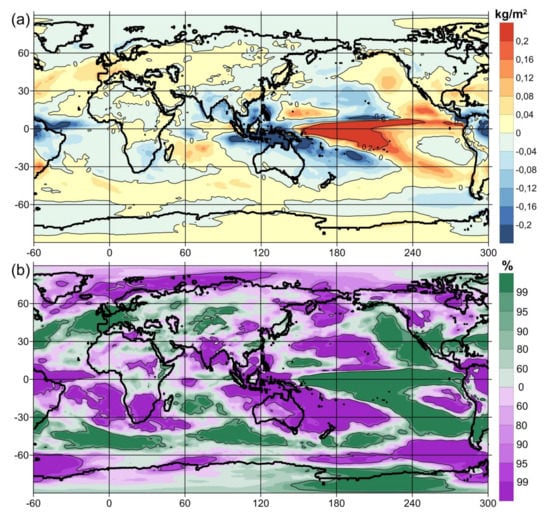 Based on the above and many other studies that were not included in this review, it can be concluded that ENSO affects many climatic processes around the globe, and in turn, many climatic processes throughout the Earth affect ENSO. This conclusion is also confirmed by the fact that many researchers have calculated high cross-correlation values with time shifts between the ENSO indices and various hydrometeorological parameters throughout the Earth, both in the lead and in the lag of variations in the ENSO indices with respect to changes in these climatic parameters. In [50,51,52,53,54,55], an attempt was made to combine the forward and backward long-range connections between ENSO and climatic processes throughout the Earth into one planetary phenomenon, which is called the Global Atmospheric Oscillation (GAO). The aim of this work is to analyze the planetary variations in hydrometeorological parameters between the opposite phases of the GAO.