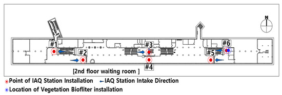 Therefore, area #6 was selected as the vegetation biofilter mockup construction site between areas #5 and #6, areas where the maximum concentration of fine dust is expected to be collected, considering the movement of passengers (Figure 1).