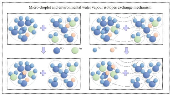 Schematic diagram of isotope exchange processes between the micro-droplet groups and environment water vapor.