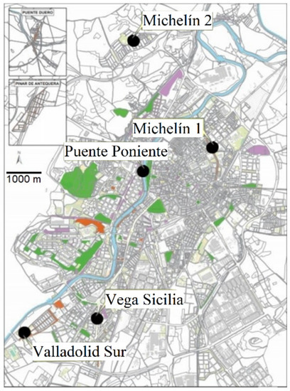 Location of the measuring stations in Valladolid (Castilla y León, Spain) (Image courtesy of Valladolid Council).