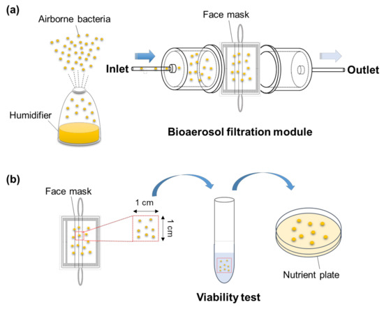 - Jeong, S.B.; Ko, H.S.; Seo, S.C.; Jung, J.H. Evaluation of filtration characteristics and microbial recovery rates of commercial filtering facepiece respirators against airborne bacterial particles. Sci. Total. Environ. 2019, 682, 729–736. [Google Scholar] [CrossRef]