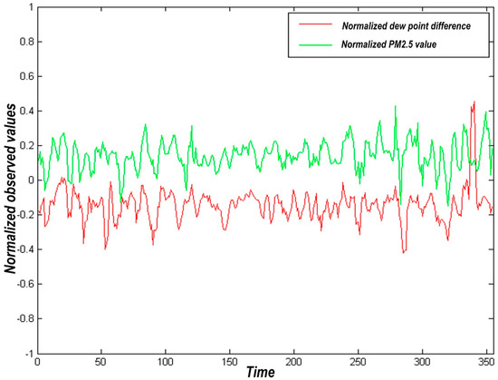In this paper, the data were selected from the temperature, humidity, dew point, wind speed, and PM2.5 concentration of Beijing urban area and Xianghe monitoring station at 10 and 16 o’clock every day from March 2014 to February 2015. Since grades monitor the observed values of wind speed indicators, a random number method is adopted to preprocess them according to the wind speed range represented by each grade.