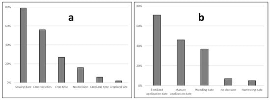 (a) Decisions made at the beginning of the growing season; (b) decisions made during the pic of the rainy season and at the end the growing season (sample size: 391).